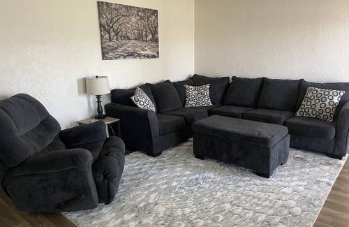 Great location, near North Medford High School. Newly renovated home inside and out! We created this house with comfort in mind-cozy pillow-top beds, super fast wi-fi and cable, new sectional couch and reclining chair, granite countertops with a great dining room to enjoy a meal or a cup of coffee! Enjoy the back patio or watching the beautiful sunset from the front porch with your friends and family.