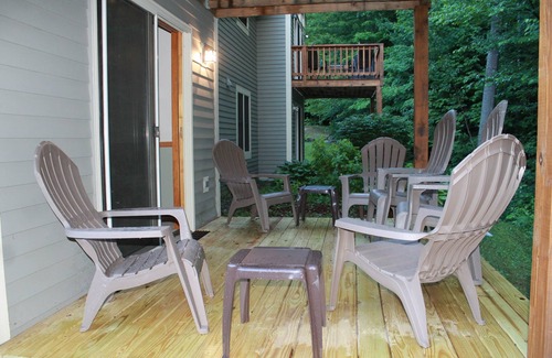 This beautifully updated and decorated property is located in Forest Ridge, a well maintained premier community development in Lincoln. On a quiet cul de sac with four other townhomes and close enough to the sports center to walk there, makes this a perfect choice for multi-generational families.This 5 bedroom, 3.5 bath vacation townhome easily accommodates three families with room to spare. The open concept with cathedral ceilings on the main floor along with the gas fireplace, creates a relaxing atmosphere. A fully equipped kitchen with large pantry/laundry room makes meal preparation a breeze! Of note, are the new stainless steel appliances, Samsung Washer and Dryer, Cabinet Hardware, Flooring and Back Splash in the kitchen laundry area. All bathrooms have new flooring as well. The outdoor deck and gas grill with a backdrop of mature trees for privacy is easily accessed from the dining area slider. The dining table seats 12 with an additional 3 at the bar. Gleaming hardwood flooring gives this townhome extra sparkle! New Lazyboy reclining sofa and swivel rockers provide easy viewing for the 47" smart flat screen TV. If you are a reader or a cross word puzzle addict, there is plenty of light for these purposes as well. The first floor master has a king bed, his and hers closets and full bath en suite. In addition, the high rise toilet, grab bars and safety mat for the tub makes this unit handicap friendly. As an added convenience, the half bath is located just off the living room. Upstairs, has two queen bedrooms with new bedding and window treatments and a full bath. A delight to our grandsons is the black light moon and star room (closet) ) which is large enough for play or sleep for little ones. The Lower level has a wrap around sectional for easy view of the 47" smart flat screen TV. Two more bedrooms with bunk beds sleeps a total of nine people. Another full bath accommodates these two bedrooms. The Game/TV room equipped with a 47" smart flat screen TV, CD player, Movies, X Box One with games, Air Hockey, shuffleboard and foosball tables are also located in the carpeted lower level. The patio accessed from the slider in the family room provides another outdoor space for gathering. Entry to the unit is keyless with a keypad lock. Cable, WIFI, internet access, sports club, linens, bathing towels (bath, hand and face) starter paper goods and soaps are provided with your rental.