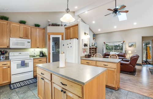 Cook a full meal in the large kitchen with enough room for multiple guests to cook together. Outside or in, you'll find plenty of seating for everyone. After dinner, go outside for some stargazing in the backyard. The master suite includes a futon for parents who want to share the room with their children, with an en-suite bathroom. Two of the rooms share a bathroom with a jetted tub for the ultimate relaxing experience. (Please note that the bunk beds pictured are for owner use only.) If you're bringing infants, this home is ready with a crib, a Pack N' Play, and a high chair. There's a beautiful open playroom for the kids to enjoy some of their own social time as well! This home also comes with a laundry room to keep packing light. For family trips to the beach, this Northern Oregon Coast vacation rental has you covered - book today!