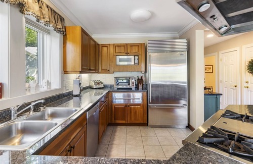 - Gourmet kitchen featuring Sub-zero and Wolf appliances, granite countertops, and ample storage