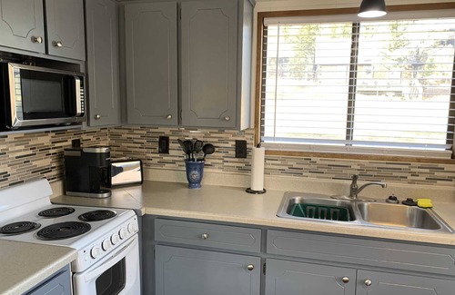 Our cabin is fresh and clean. Remodeled in 2022 with fresh paint, new flooring, high quality mattresses & pillows and new furniture. Cozy up to a wood burning fireplace in the open living and dining area that includes a well equipped kitchen. Enjoy Dish satellite on a flat screen TV or watch movies from our DVD library from the couch or recliner. Dine outside at the picnic table on the lawn next to the charcoal (depending on fire restrictions) and gas BBQ grills. The bedrooms each have a queen bed and the couch is a sleeper sofa to comfortably accommodate up to 6 people, 2 to a bed. There is one full bath with a tub/shower. All bath, bed and kitchen linens, bath soap, kitchen soap, paper towels, toilet paper, salt & pepper, coffee filters, trash liners as well as Shampoo and Conditioner are provided. We also have WiFi!