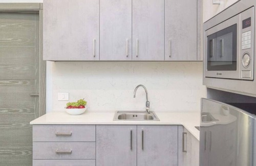 Welcome to Grey203, a stylish 2-bedroom apartment that promises a delightful stay. The first bedroom is furnished with a comfortable double bed, while the second bedroom features two cozy single beds, perfect for accommodating families or groups of friends.