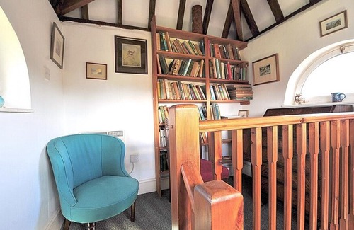 An attractive and appealing house quietly tucked away in the pretty West Dorset village of Chideock. The property provides a characterful family holiday home that includes a small tower housing a "lookout study" with delightful views around the local countryside. Large gardens surrounding the house include lawns and a wooded area. A small, open stream borders one side of the garden so care must be exercised with young children. The village has a couple of pubs & shops. The unspoilt beach at Seatown is only about 10 minutes walk away. Please note : A maximum of three dogs are accepted. GROUND FLOOR Kitchen /breakfast room Cosy lounge with woodburner Dining room Bed 1: Twin beds Bathroom : Bath, w.c. Utility room FIRST FLOOR Bed 2 : Kingsize bed Bed 3: Twin beds Bathroom : Bath, shower cubicle, w.c. Small study /turret room - up open stairs from first floor OUTSIDE Large gardens with lawn, shrubs, wood and open stream bordering Patio area with garden furniture GENERAL INFORMATION Off-road parking for 2-3 cars Utilities included Logs not supplied - available locally Travel cot (no linen) and highchair included Linen and towels included - beds made-up FACILITIES TVx3/DVD/VIDEO/CD Electric cooker Wifi Fridge/freezer Microwave Dishwasher Washing machine Tumble dryer Electric and night storage heating Woodburner Pets information: Pet properties are advertised accordingly and a pet fee charged £20 for EVERY dog - per week,