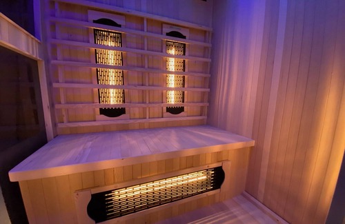 Layout: Ground floor: (Living room(TV(flatscreen), dining table, seating area, DVD player), open kitchen(stove(gas), electric kettle, coffee machine(pads), microwave, dishwasher, fridge-freezer, dishes and cutlery, Cooking basics), bedroom(single bed, single bed), bathroom(shower, washbasin, toilet)) Internet access, infrared sauna, patio, heating(central), terrace, garden furniture, parking, parasol, high chair, playpen