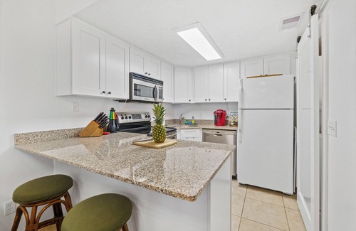 Upon entering, you'll be greeted by a delightful beach-inspired interior that radiates sunshine and relaxation. The decor captures the essence of coastal living, creating a welcoming ambiance that invites you to unwind and enjoy your vacation to the fullest.