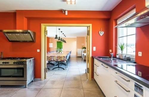 This spacious pet-friendly villa in Mellier is perfect for large groups or family reunions, offering comfort, entertainment, and privacy in the heart of the Ardennes. With multiple kitchens, living areas, and 12 bedrooms, including a separate guest house, it accommodates up to 32 guests. The main dining room seats everyone together, making it ideal for celebrations or retreats.