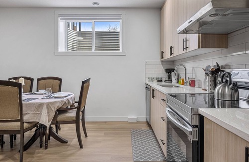 Nestled in West Calgary’s brand new neighborhood, we invite you to our beautiful brand-new basement suite for the ultimate comfort during your next visit. Relax in a community where you can spend your day hiking, biking, or snowshoeing taking in the beautiful surrounding views. Have the closest access to Cochrane, Canmore, or Banff within living inside the city limit.