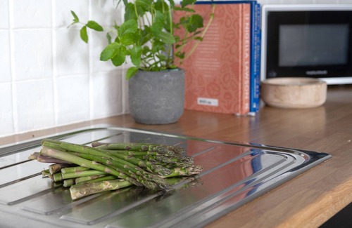 Well-equipped kitchen with electric oven and gas hob, fridge-freezer (3 drawers), Nespresso coffee machine, microwave, toaster,cafetière, dishwasher, washing machine. Iron and ironing board, clothes airer and hoover in understairs cupboard.
