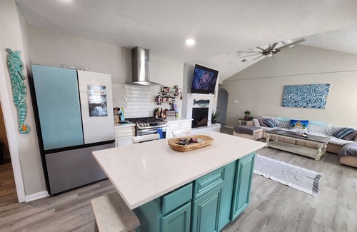 Relax and enjoy the waterfront with the whole family at this peaceful getaway close to Galveston beach, Kemah boardwalk, Schlitterbahn waterpark, Nasa space center and so much more! Bring your boats and enjoy the dock with two boat slips or use the included kayaks to enjoy Premium saltwater fishing paddle distance away!