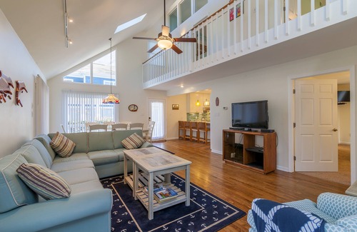 OVERVIEW: This home in "The Pines" will wow you! Come and relax in this recently renovated 3BR, 2BA, two-level single-family home that is handicap accessible. Yes, that is correct; a beautiful beach home that is wheelchair accessible. The bottom level of this home offers a well-thought-out renovation with expanded door jams, ramps to get in and out of the home, pavers from the street for easy wheelchair access to the ramp and street, a bottom level primary bedroom w/ ensuite, removable ramp for a rear three-season room, and so much more. On the bottom level of this home, you will find an amazing renovated kitchen w/ stainless steel appliances, quartz kitchen countertops, beautiful tiled floor, hardwood flooring, living room w/ flat-screen TV, blue-ray DVD, and dining table to accommodate eight people plus island area for more seating. The second level offers two bedrooms, a large rear deck, and a full bathroom. Sleeping eight people comfortably, no detail was forgotten; beach equipment and beach wagon are available to our guests.