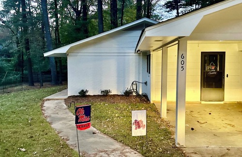 At Your Happy Place in the Sip, countryside charm meets modern comfort and a little bit of luxury! This all-brick 3-bedroom, 1-bath farmhouse themed home offers the perfect blend of comfort and convenience. Situated on a quiet, tree-lined street in the historic College Hill Heights neighborhood, Your Happy Place is half a mile from the Ole Miss Golf Course, and 3.5 miles from the Ole Miss campus, The Grove, and The Square, and 3.7 miles from M-Trade Park, so you'll have easy access to all of Oxford's best attractions, dining, shopping, and entertainment during your stay.