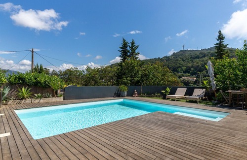 Villa Cedra is an amazing 5 bedrooms modern villa located in a peaceful area at less than 10 minutes by car from the Port of Nice or Villefranche sur mer sand beach. This contemporary villa offers an entrance, a large living room with dining area , a full equipped open kitchen. On the same floor, you will have a first double sofa bed bedroom with its ensuite shower room. On upper floor you will have a second bedroom with king size bed and its ensuite shower room, a double bed bedroom, two bedrooms with single bed each and a last bathroom. In total the house offers 3 toilets and can welcome up to 8 people. The entire villa offers air conditioning in every room and private outdoor parking space. You will love its private pool and all outdoors areas. Shops and Nice city center are at 15 minutes away by car. Perfect for a holiday rental in Nice.