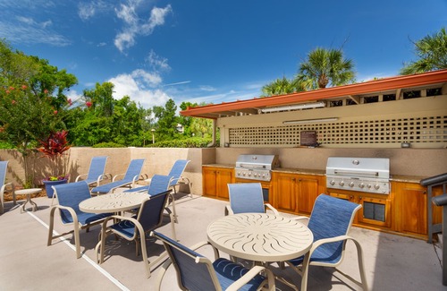 A large and inviting private pool is steps from the villa, perfect for family fun and soaking up the sun – lounge chairs included. Take a dip in the hot tub, too! Along with the large grill area, this landscaped compound is the perfect place to kick back and relax.