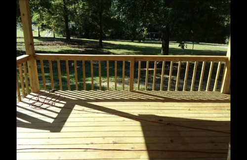 This newly constructed cabin sits on the banks of the Little Red River, on a great stretch of the river for trout fishing or kayaking. The cabin is beautifully decorated with all the features of home. The kitchen, living area, master bedroom and bath are located upstairs for a great view of the river. The kitchen is equipped with new appliances, all the utensils, dishes, and cooking tools you will need. Master bedroom is furnished with very comfortable king size bed, wall mounted tv. The master bath has a beautiful big walk-in shower. You can enjoy the river view from inside in the living area or step outside to a huge screened in deck. Downstairs the guest bedroom is furnished with a king size bed, tv . There is a bonus room with a queen bed in it with enough room for a blow up mattress if you wanted to bring one, for a extra guest. The guest full bath is also located down stairs. The utility room has washer and dryer and is located down stairs as well. You can also walk out the back door to the downstairs deck. There is a carport to put your boat in out of the weather if needed. If it’s front porch sitting you enjoy, you will love the huge porch on the front of the cabin to relax and take in the beautiful country scenery. The cabin is at the end of a dead end road in a very quite area 1/2 mile from the boat launch at Ramsey Landing with lots of wildlife. Outside there is a covered area equipped with charcoal grills for grilling. It also has a private dock for fishing, parking your boat, or just relaxing.