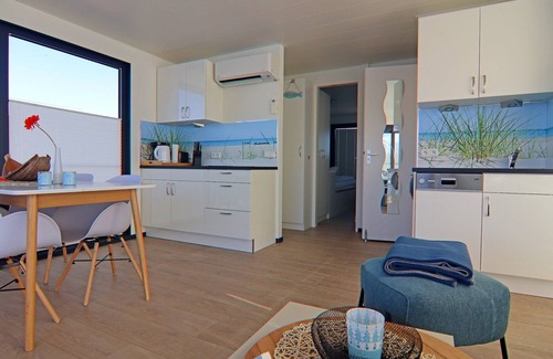 Layout: Ground floor: (open kitchen(hob(2 ring stoves, ceramic), electric kettle, toaster, coffee machine, microwave, dishwasher, fridge), Living/diningroom(TV(flatscreen, satellite), dining table, seating area, radio), bedroom(double bed), bedroom(double bed), bathroom(shower, washbasin), toilet(washbasin, toilet)) Bread delivery service, heating(through air conditioning), terrace(16 m2), roof terrace, garden furniture, parking, deckchairs, Laundry Package incl.