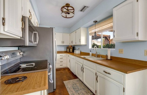 Enjoy your Lake Havasu getaway in this charming 2-bedroom, 2-bath vacation home featuring a private backyard oasis with a relaxing hot tub, covered patio, and BBQ grill—perfect for unwinding after a day on the lake. Inside, you'll find a clean, comfortable interior with all the essentials, including a fully stocked kitchen, cozy living room, and spacious bedrooms. Conveniently located near the lake, shops, restaurants, and local attractions, this home is ideal for couples, families, or friends.