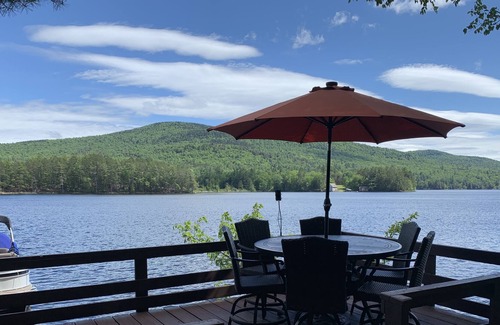 Our cabin is nestled in the heart of the Adirondack Mountains. This lovely 4 bedroom, 1.5 bath year round home on beautiful Long Lake is set on a 1.2 acre wooded waterfront lot. The property offers spectacular views from large picture windows and an elevated deck overlooking the lake. With over 200 feet of lakefront, dock your boat, enjoy fantastic fishing, swim, or relax and enjoy nature on your own private shore. Attractively decorated Adirondack-style for the perfect mountain escape! The interior has a spacious living room with a beautiful stone hearth and wood burning stove for those crisp Adirondack nights. Enjoy peaceful privacy conveniently located within walking distance of all the amenities and attractions the town has to offer. Just minutes from the town beach, marina, boat launch, sea plane rides, grocery store, shops and restaurants! Weekly rentals only in July and August Saturday-Saturday. THE BEST location on the lake for 4th of July fireworks!