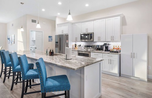 This waterfront home is place to relax with the whole family at this peaceful place to stay. Access to the whole house. A king and a set of queen beds, it's perfect for a group of family and/or friends! The new kitchen, hanging hammock chair, heated pool, fire pit are just a few reasons why this place is perfect for you to sit back, relax & gaze at the star. The nearest beaches are Yacht Club Public Beach 25 minutes away & the Fort Myers Beach 40 minutes away. We provide beach chairs & a cooler.
