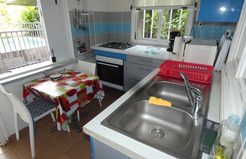 Beautiful kitchen: fully equipped, 1 sink, 1 hob, 1 oven, 1 microwave, 1 coffee maker, 1 washing machine, various cupboards, 1 table + 2 chairs.