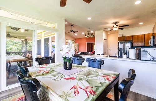 Welcome to the perfect Hawaii Homebase for you & your family-friends! Enjoy tons of space and privacy in this gorgeous, pet friendly, 4BR/2BA fully appointed home on a five acre fruit farm, designed for up to 13 guests. This retreat offers ocean views, various indoor & outdoor areas to dine and relax, and all the essentials for a memorable stay. On the scenic Hamakua Coast, and just minutes from Akaka Waterfall and Hilo town, you’ll be perfectly located to explore the best of the Big Island!