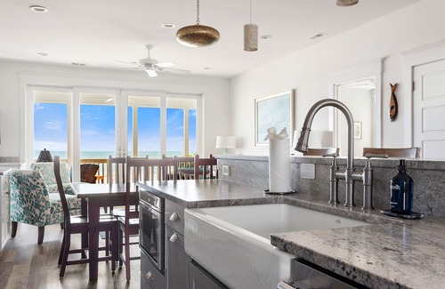 The Space: As you step through the front door you are welcomed by a well-equipped chef’s kitchen with professional-grade Thermador appliances, including a six-burner range and an open floor plan living space overlooking the ocean. The living space features a dining table that seats eight people as well as island seating for four. Here, you will also find a comfortable living room to lounge in with a 55' smart TV with cable and streaming services. Enjoy the expansive screened-in porch with a plush patio set and a table that seats ten.