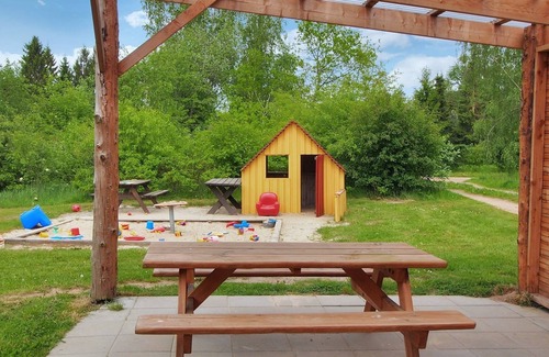 Single-family house, built in 2001. For shared use: swimming pool (seasonal availability: 15.May. - 28.Aug.). Private: natural state property 1'301 m2. Barbecue, parking at the house. Grocery 6 km. Golf course 11 km. The owner does not accept any youth groups.