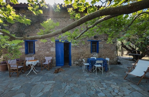 In an idyllic private olive grove by the Ionian Sea, among olive trees, cypresses and pines, lies the restored 1920 Mercouri stone cottage.
