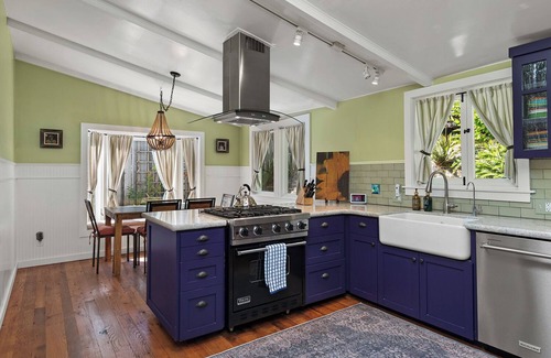 Hidden Gem is named for its fantastical location – a secret sloped garden tucked off the main street of charming Freestone. Guests peek out to the town or keep to the retreat-like historic home with modern touches. Freestone was the first historic district in Sonoma County and Hidden Gem is one of its true jewels. Built in 1918 and lovingly restored, Victorian and Craftsman style touches are evident throughout. An open and well-stocked kitchen invites sampling local wines and produce – fresh from the coast or local farmstands – just down the block. You’ll laugh and bake or BBQ with friends and family while tasting the best of Sonoma County.