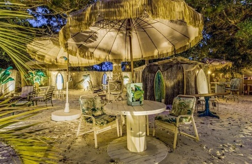 Enjoy this all-inclusive private resort outfitted with 2 patios, 2 grills, an outdoor shower, pool and hot tub. The coveted white sand "Tiki Village" boasts an outdoor bar area that lights up at night with surround sound. Jump start your vacation in this true mini paradise.