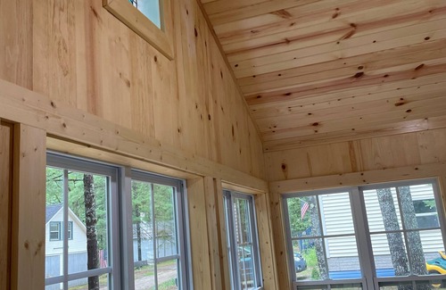 Main bedroom has queen bed, second bedroom full bed and third bedroom twin daybed with matching twin trundle. Sunroom can be used for sleeping on couch or room for air mattress (included). Renovated kitchen offers easy cooking. There's also an outdoor grill and fire pit w/adirondack style chairs for campfires. A/C and heat for any extreme weather. Perfect for a family looking to get away!
