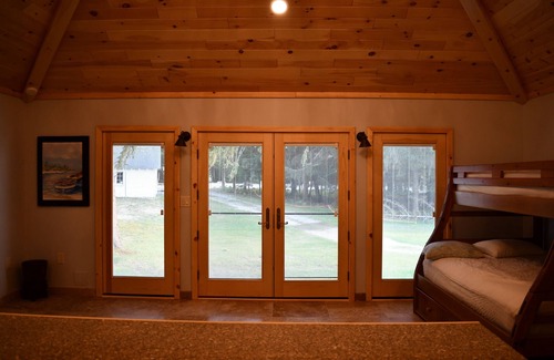 Studio Guest house, includes full/twin bunk, sofa bed, full size kitchen and bathroom. High vaulted knotty pine ceilings with a chandelier and Travertine floor. 180 ft. frontage on Higgins Lake with large yard shared with the main house. Peaceful, Panoramic views of Higgins Lake with beautiful sunset. The guest house can be rented separately ($350/nt) or with the main house for additional price ($200/nt). Main house accommodates 12 and this guest house 2-3.