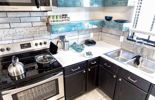 We provide a fully stocked kitchen in case you decide you want to stay in and cook. The entry door has a smart lock so that we can set your access code before you arrive. Please give me an estimated time window to make sure your code is set before you arrive.
