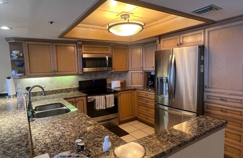 Your home away from home in New Smyrna Beach with 2 bedrooms. This condo is the perfect getaway for guests seeking a beautiful and relaxing vacation. The bedrooms feature a king bed and two double bunk beds. There are also 2 accessible cots and a pack-n-play available, ensuring a comfortable stay for everyone. With amenities like two pools (one heated), hot tub, fitness room, pickleball courts, AC, heating, a hair dryer, WiFi, and in unit washer and dryer, you'll have everything you need for an stress-free stay. The 2 bathrooms offer showers, and a bathtub. We'll be available to answer any questions while you stay in our slice of heaven.