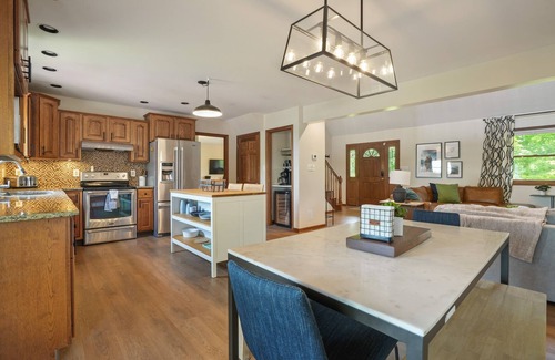 This remote setting and picturesque background make this perfect for your next family or friend getaway! Enjoy the sprawling space offered indoors and outdoors. This whole house rental comfortably sleeps 10 guests.