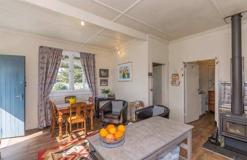 Classic kiwi Bach with 1 bedroom, new bathroom and open plan kitchen and living area.