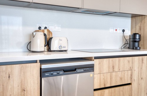 Spacious modern living: Our 2-bedroom apartment in Limassol offers a generous living space with premium amenities like a Marshall speaker system and Nespresso machine to enhance your comfort.
