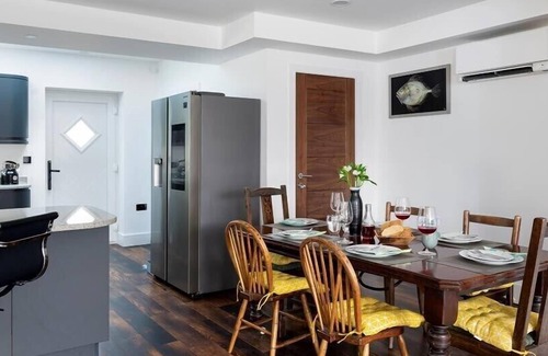 Large open plan lounge, kitchen & diner. The lounge has a large comfy sofa, 75" smart TV, toy box for the children and also a telescope to catch the boats come in to the harbour. A fully-equiped kitchen with breakfast bar, modern oven, dishwasher, fridge, microwave.