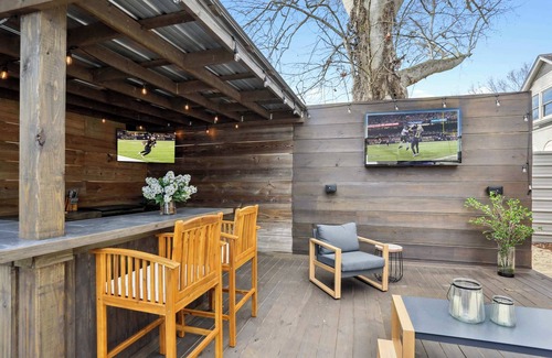This premium and gorgeously renovated inn right near the French Quarter can fit up to 16 guests with its 8 bedrooms, 6 bathrooms, and is near everything New Orleans has to offer. With its modern amenities, including a heated pool and an outdoor cabana with a kitchen and bar, this inn is the perfect NOLA retreat. The professionally designed spaces offer open-concept layouts and kitchen & dining spaces perfect for entertaining.