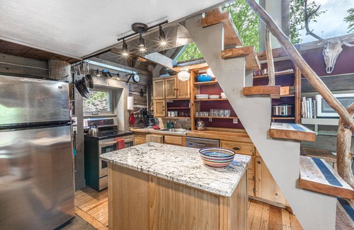 Step back in time at this historic 1879 cabin, updated with modern comforts while preserving its rustic Colorado mountain charm. Just a few blocks from downtown Ouray, this 2-bedroom, 1.5-bath pet-friendly retreat offers the perfect mix of history, convenience, and outdoor adventure. Enjoy mornings on the deck with views of the Amphitheater, evenings grilling on the BBQ, and days exploring nearby trails, hot springs, or mountain adventures.