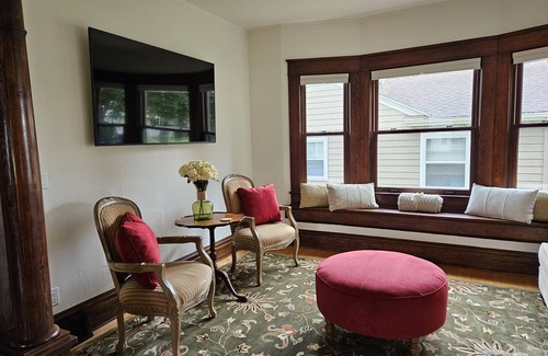 Located in the heart of downtown De Pere, this 3-bedroom, 2-bath 1909 Dutch Colonial Revival has historic charm along with many modern amenities, including WIFI, Smart TVs, self check-in with keypad, and updated bathrooms and kitchen.