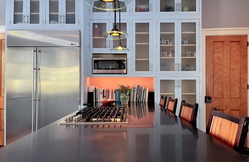 * “Entertainment room” with leather seating and 55” 4K Ultra-HD Smart TV with Hi-Definition Cable, various streaming services (Netflix, Amazon Prime Video, Sling TV, Pandora, Spotify, etc.), Blu Ray DVD player, and state of the art surround sound