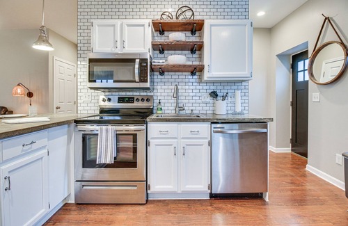 If small-town charm is what you’re after, you’ll love this bright 1-bedroom, 1-bath vacation rental in Loveland, OH! Originally built in 1830 as a schoolhouse, this apartment offers an excellent location in the heart of downtown with all the comforts of home. Sip your morning coffee in the full gourmet kitchen before kayaking on the majestic Little Miami River or adventuring around the city. After your adventures, kick back on the leather sofa and enjoy a cozy movie night by the Smart TV.