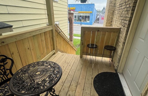 Make yourself at home in this newly remodeled, 2-bedroom retreat in the heart of Historic Downtown Marion! This home was built by the leader of the prohibition movement in Marion and was ironically recently purchased and renovated by local drinkery owners and bourbon enthusiasts! Enjoy this centrally located space as it is within a 5-10 minute walk to downtown entertainment, nightlife, dining and more. The outdoor balcony / patio is a great space for morning coffee or an evening "wine down." The apartment is fully equipped with one queen bedroom and one twin bedroom, closets, dressers, living room, kitchenette with dining table, efficiency fridge, microwave, toaster, double burner hotplate and all of your cooking essentials / dining and drinking ware. Gourment coffee and an array of teas are included. The bathroom includes a newly tiled walk-in shower, bath essentials, first aid kit, and several medicine cabinet extras should you be in need.