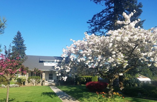 This stay features a game room with a ping pong table, poker table and board games to fit every preference. Relax and unwind with a good book on the large front porch. This property stretches out to a garden and large undercover back patio with a hot tub and an additional seating area with a fire pit. In true farmhouse style, this stay features modern design coupled with authentic farmhouse appeal that puts comfort first. Discover this home's charm and character with many original features. This property features an English garden, fruit trees, a bonfire pit and a park walk for nature lovers. From cozy nooks to comfortable beds, come experience a scenic stay and getaway in the heart of downtown Washougal, sitting on 1.5 acres! We have recently added a one-wheel track that stretches over 3/4 miles over the property!