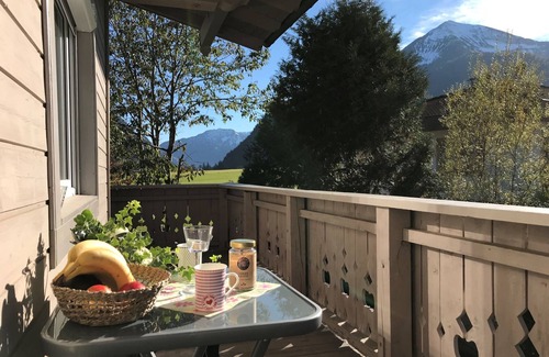 "Hochunnutz", 3-room apartment 54 m2 on 1st floor. Spacious and bright, wooden furniture furnishings: 2 double bedrooms. Kitchen-/living room (oven, dishwasher, 4 ceramic glass hob hotplates, kettle, electric coffee machine) with dining nook and satellite TV (flat screen). Bath/WC. Heating. Carpet. Beautiful view of the mountains and the countryside. Facilities: Internet (WiFi, free). Parking (roofed, 1 car). Please note: non-smokers only. A shared balcony (west orientation) with balcony furniture can be reached via the floor corridor.