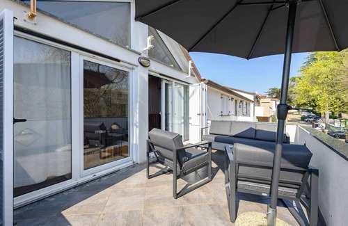 The holiday apartment is located in an apartment house and is furnished in a modern and functional style. The property is located in a busy environment, in a residential area, on the outskirts. Also due to its sunny location the domicile is popular. Available for your exclusive use: terrace and garden furniture.LocationKatoro, district Katoro. The holiday apartement is located on a enclosed plot. The landlord does not live in the house or on the property. Access is via a side road (asphalted). Parking is available on the street in front of the house. Specialair conditioning.Facilities: internet access (WLAN) and washing machine. TV reception takes place via electric wire. Dogsallowed, EUR 10.00/pet per day. DistancesShopping 10 m, restaurant 10 m, town center 3,5 km. Main road 200 m. In summer: Katoro 200 m in Katoro (beach 200 m in Katoro featuring meadow, stones and rocks). horse riding in Horse centre Katoro 300 m. tennis in Umag Tennis Academy 100 m. DivisionHoliday apartment, 1 floor, 3 rooms (including 2 bedrooms), 75 sqm, in total 5 beds (including 1 additional bed). RoomThe entrance to your holiday apartment is located on the 1st floor