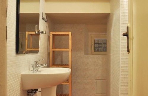 The interior of the flat reveals a large kitchen-living room illuminated by large sliding glass windows, creating a cosy and bright environment perfect for convivial moments. The modern and functional kitchen is equipped with all the necessary accessories, including a table, chairs and a comfortable double sofa bed. Two shelves provide ample storage space, while the finely furnished bedrooms in local style offer a peaceful rest: one with an elegant wrought-iron four-poster bed and the other with a practical double bed plus a bunk bed. The bathroom, accessible through an arched door, boasts a large shower cubicle for maximum comfort.