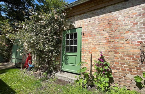 In the middle of this small oasis of old trees and secluded corners of the garden stands the old vicarage from 1743 and right next to it the former wash house, which now houses the holiday flat of the same name. The flat has a living room with an open-plan kitchen and wood-burning stove, a bathroom and a bedroom on the first floor with a double bed and a "cupboard bed" that your child will love. The flat is heated exclusively by the wood-burning stove. Logs can be purchased per basket from the landlady as required. The bathroom is heated with an infrared heater. The hot water is provided by an instantaneous water heater.