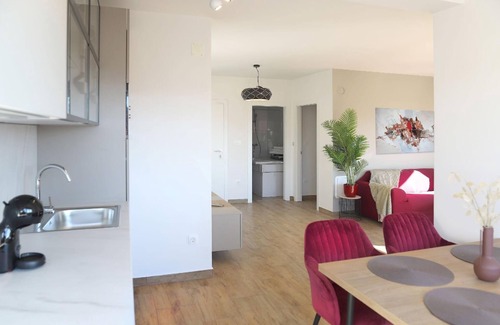 Villa Basilea consists of 4 beautiful apartments. The apartment for a maximum of 4 people, with a total area of 70 m², consists of a kitchen, a dining room, a living room connected by the same room, a double bedroom, a bathroom with a toilet and a shower. The kitchen is fully equipped and has a coffee machine. In the living room there is a couch that can be converted into an extra bed for additional people. The apartment has a covered balcony of 10 m².