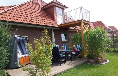 The holiday apartment has around 100 square meters and consists of a combined living and dining room with a kitchen, which is separated by a counter. With satellite TV and internet. Two bedrooms, the second bedroom with television and a bathroom with shower. The kitchen is fully equipped with a dishwasher, oven, ceramic hob, coffee machine, egg cooker, microwave, Senseo machine and toaster. Towels, shower towels and bed linen are included. There is a sauna (3x3m) available in the garden. From the living room you can go directly to the balcony, which is also access to the garden. There are also play equipment for the children available there. Our house is located in a quiet cul-de-sac in the immediate vicinity of the historic harbor and market square.